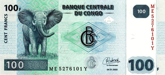 Kongo 100 franków Słoń 2022 P-98Ac