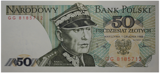 PRL 50 zł Karol Świerczewski 1988 seria GG P-142e