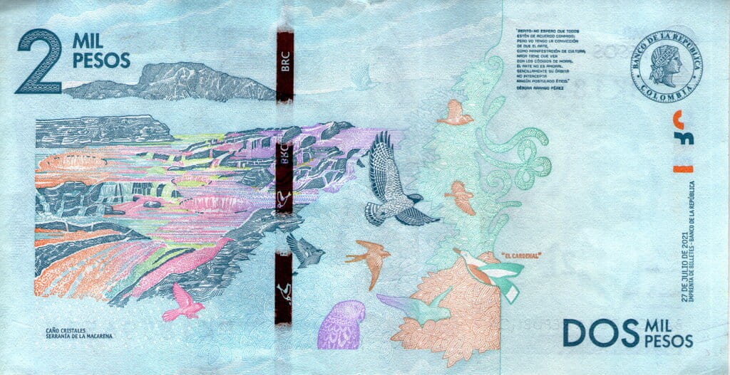 Kolumbia 2000 peso Ptaki 2021 P-458g