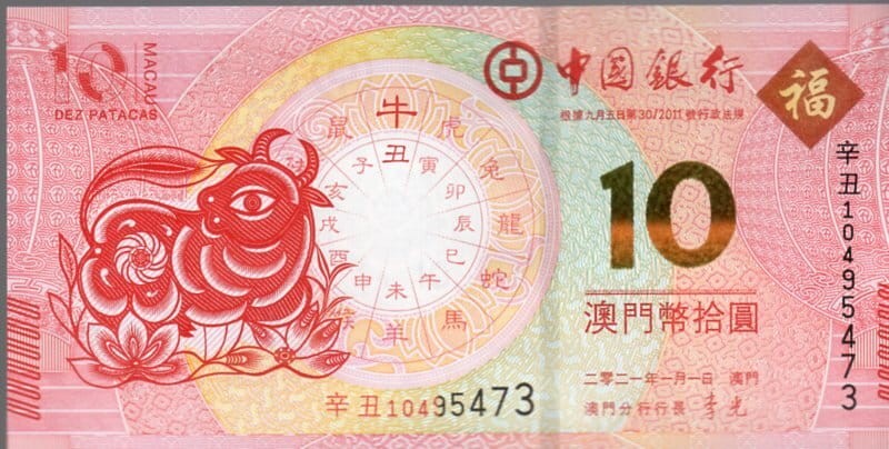 Makao 10 Pataca Rok wołu 2021 P-124 BOC