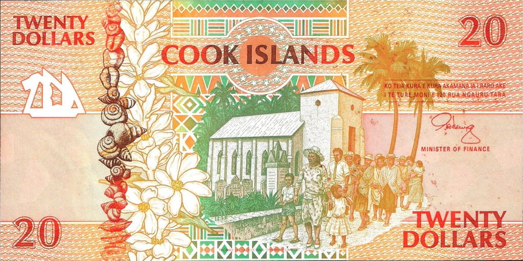 Wyspy Cooka 20 $ Kościół/ Krab 1992 P-9